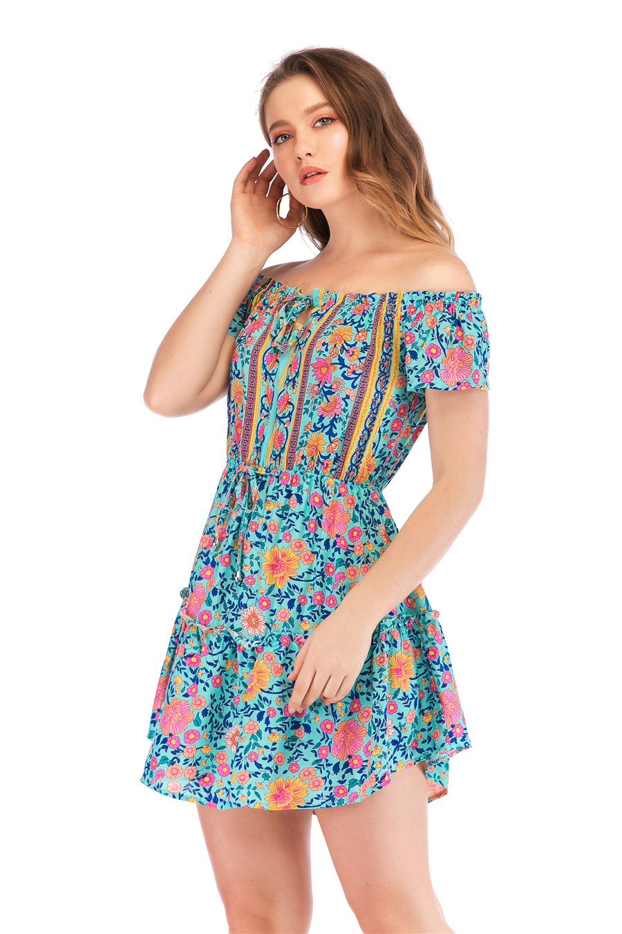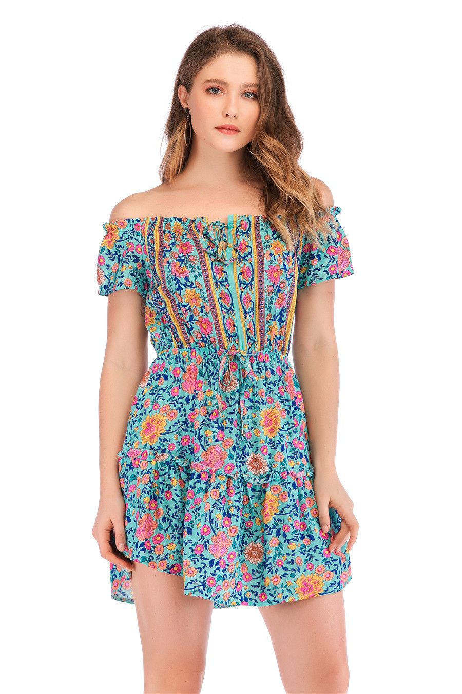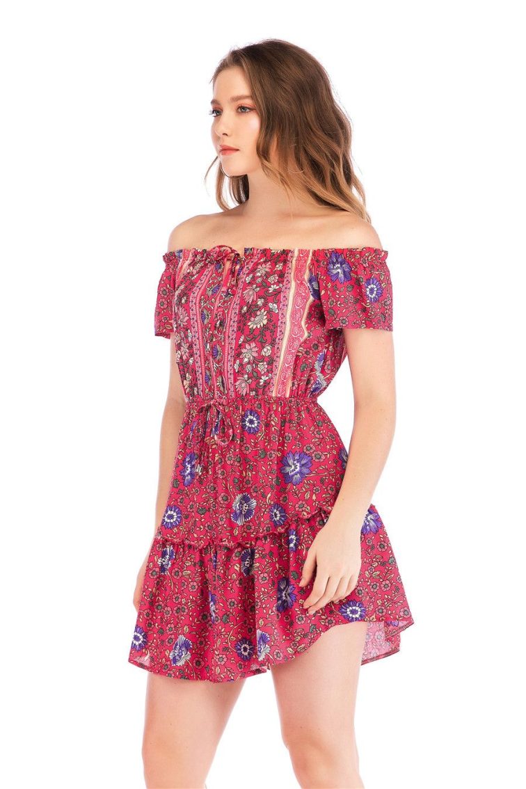 Product Category: DressPattern: printingColor: red, blueSize: S, M, L, XLClothing threshold: hedgingWaist type: elastic waistStyle type: fresh and sweetCombination form: single pieceSkirt length: mid skirtPopular elements: stitching, printing, off-the-shoulderStyle: wrapped chestFabric Name: CottonClothing style: Europe and AmericaApplicable age: adultStyle: Europe and AmericaPackage includes: 1* dressSize Bust Length WaistS 86cm 78cm 60cmM 90cm 79cm 64cmL 94cm 80cm 68cmXL 98cm 81cm 72cm Warm prompt: There is 2-3% difference according to manual measurement. please check the measurement chart carefully before you buy the item. Please note that slight color difference should be acceptable due to the light and screen.